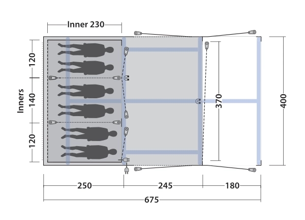 Outwell Boston 5 Air TC er et fremragende valg hvis du søker overlegen komfort. Den er laget av pustende Outtex® Airtech-stoff, som sikrer et behagelig innendørsklima — ideelt for ferier i varmt vær. Inkluderer det nye integrerte patenterte Outwell Light System, som gir dimbart, funksjonelt lys i oppholdsrommet for hyggelig teltliv. Rask & Stille innvendige dører gir deg enkel tilgang til de mørklagte soverommene for en bedre natts søvn. Tilgangen er sømløs gjennom de patenterte Quick & Quiet magnetiske dørene, eller du kan åpne fronten helt for en panoramautsikt over omgivelsene.
