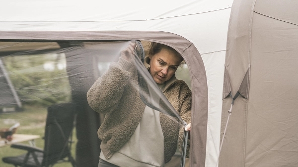• Lyst yttertelt i varme fargetoner skaper en lys og innbydende atmosfære i teltet