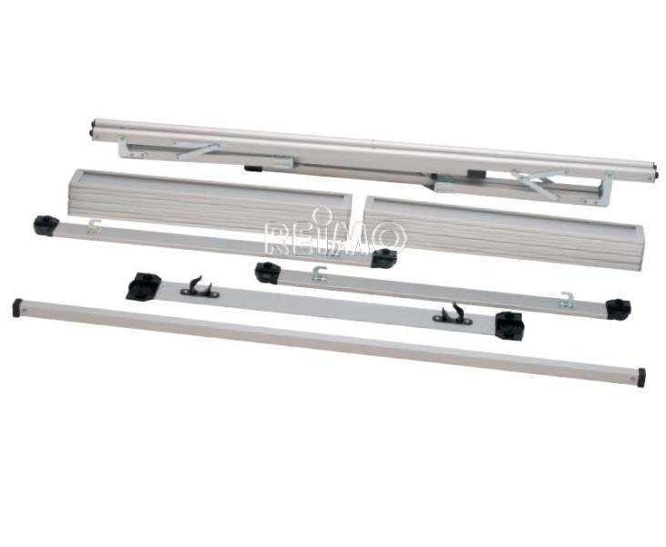 Campingbordet til 6 personer, et robust bord med høydejusterbare ben. Særlig stabil konstruksjon laget av aluminium. Meget praktisk er redskapsnettet under bordet. Bordet kan oppbevares i bæreposen.