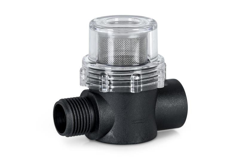 Selvansugende 3-kammer membranpumpe 4,1 A (maks 8 A) med tilkobling via utvendig gjenger inkludert 1/2 '' slangetilkobling og vannforfilter.