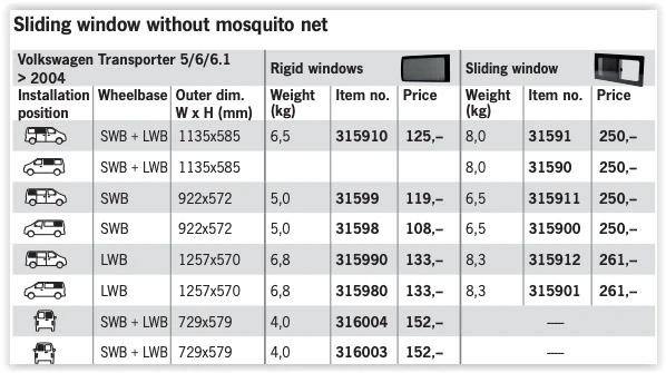 De mørktonede sikkerhetsglassvinduene gir kjøretøyet en elegant karakter, gjør boksen om til en stasjonsvogn og egner seg for utskifting og ettermontering. Mange vinduer er tilgjengelige som skyvevinduer og bringer frisk luft inn i kjøretøyet.