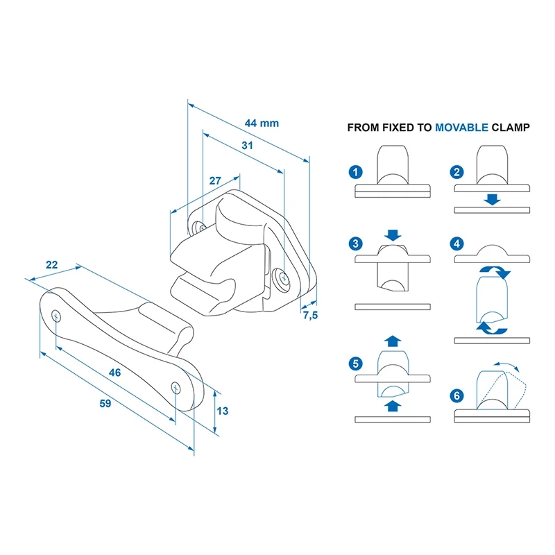 - Tykkelse veggmonteringsdel: 7,5 mm