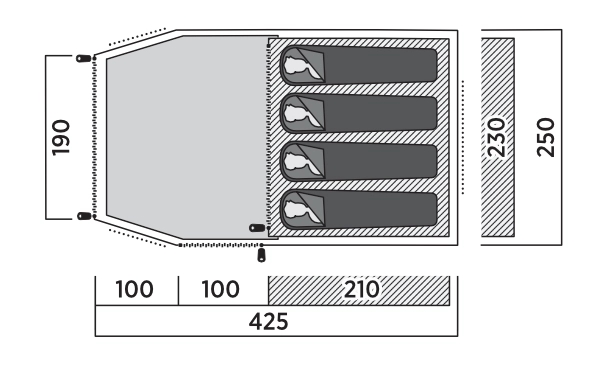 • Allsidig tunneldesign med tre stolper og stort inngangsområde for oppbevaring