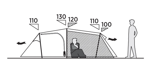 • Ventilasjon foran og bak i teltet