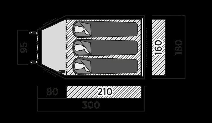 Quasar 300 setter opp med innerteltet først og har en forlengelsesstang som skaper et stort inngangsområde for oppbevaring. Den klassiske kuppeldesignen gir god høyde i hele teltet og rikelig med nyttig boplass i en liten, lett pakke til en overkommelig pris. Designet har stått testen og vist seg egnet i utallige situasjoner. Dette store tre-køyeteltet er ideelt for par som ønsker enkelheten og allsidigheten til kuppelteltet, men ønsker mer plass til seg selv eller en bobil til.