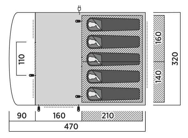 • Oppbevaringslommer i stue og innertelt