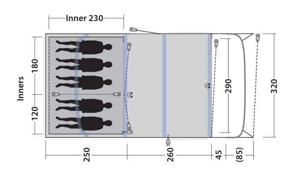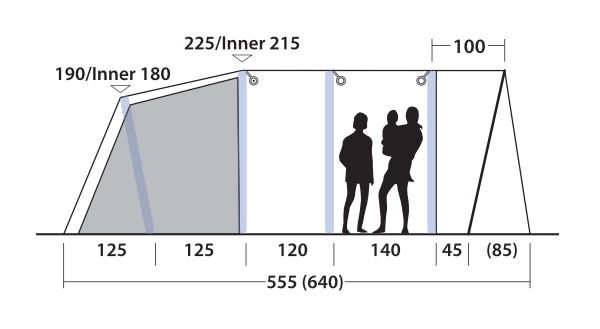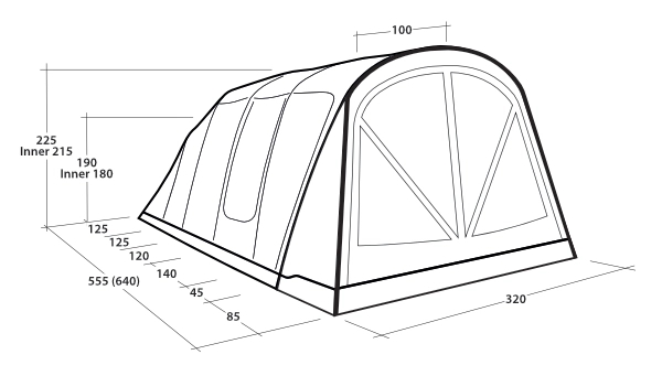 • Formede luftstenger sikrer god ståhøyde og romslighet i teltet