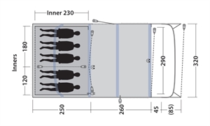 Outwell Florida 5 Air tilbyr et Dual Front-system, som gjør det mulig å bruke teltet som et tre-soners telt eller med et åpent frontfortelt, avhengig av bruken av den avtakbare fordøren. Teltet er fullt utstyrt med Outwell-innovasjoner og har et holdbart og sterkt Outtex 6000 RS Express-overseil, som sikrer en trygg campingopplevelse i all slags vær.