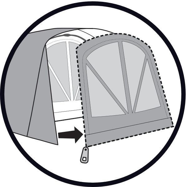 • Telt med Dual Front - kan brukes som et tre-sone telt eller med åpen front med solseil