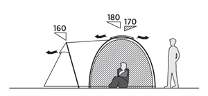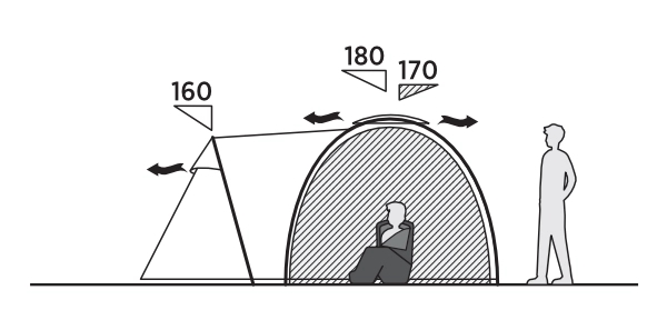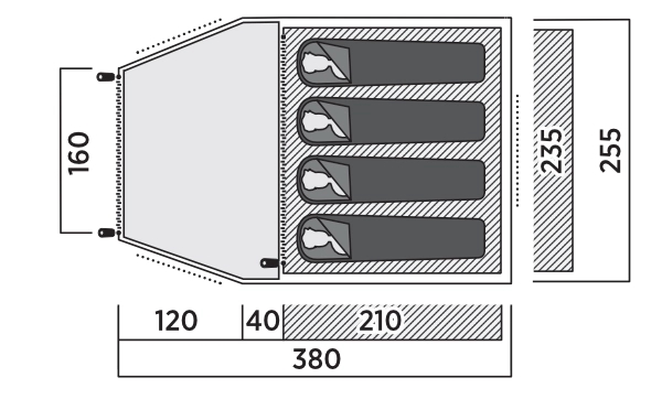 • Kuppelformet telt med utvidet oppbevaringsområde