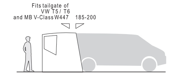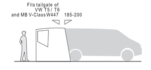 • Designet for bakluken på VW T5/T6/T6.1 (Multivan, Caravelle, Transporter, California), MB W639/W447 (V-Class, Vito, Marco Polo) og lignende biler