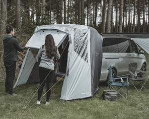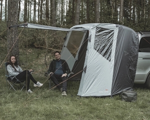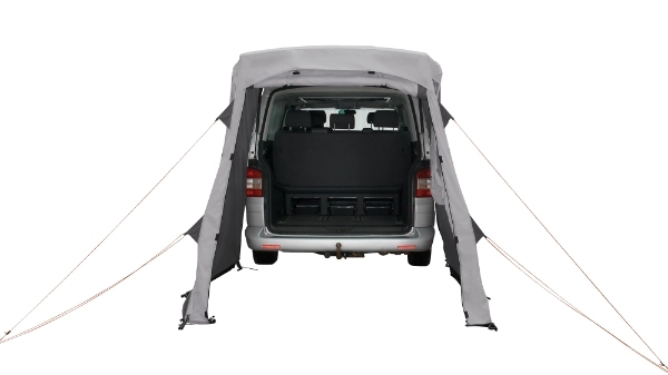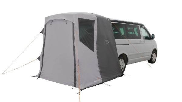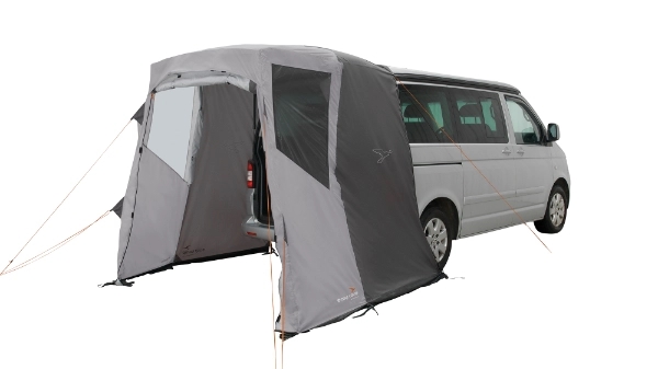 Krossbu er et allsidig bakluketelt som gir ekstra fleksibel plass til bobiler. Det settes sikkert opp på bakluken med doble barduner og har en dør som enten kan rulles opp for enkel tilgang eller brukes som solseil for ekstra beskyttelse mot sol og regn.