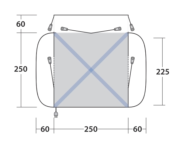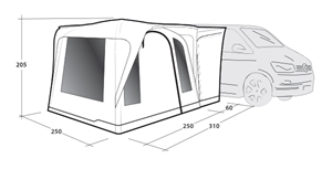 Outwell Daytona Air drive-away-teltet har One-go oppblåsingssystem for enkel oppsett og er ideelt for par og små familier som trenger ekstra bo- og soveplass. Denne slanke, parallellmonterte designen festes til campingvognen din og tilbyr stabilitet og allsidighet med luftslanger. Regntette kalesjer over både for- og bakdører sikrer enkel tilgang og god ventilert beskyttelse, selv i dårlig vær