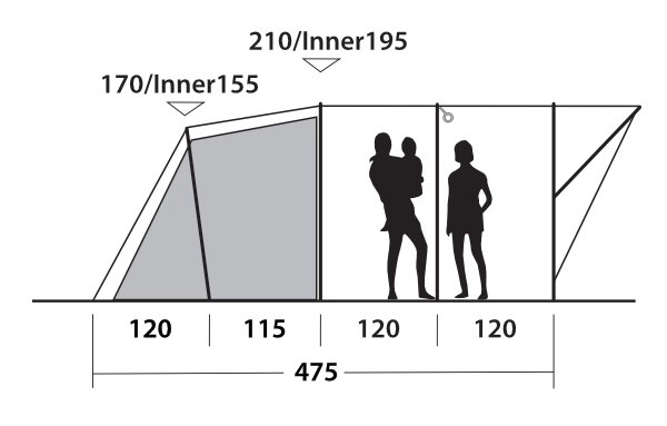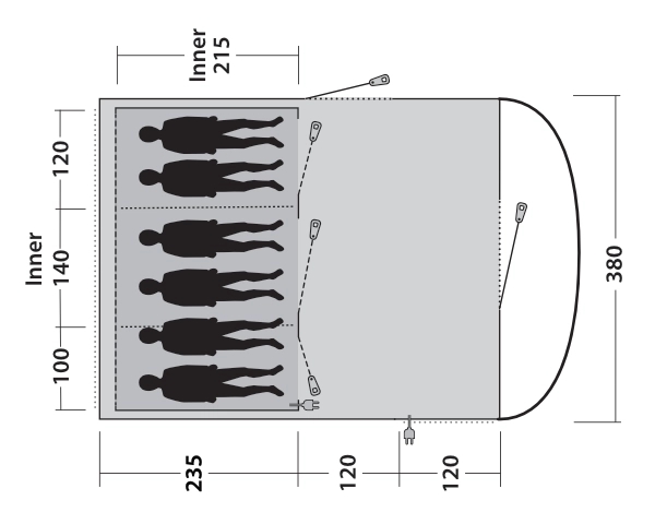 Familier vil elske plassen, lettheten og komforten til stangteltet Sky 6 i tunnelstil. Tonede vinduer og en fortelt fyller oppholdsrommet med lys. Dette gjør det til det perfekte stedet for avslapning med utsikt. Du får alt du trenger for store eventyr på farten med de tre mørke sovekabinene som har plass til seks bobiler og ventilasjon bak som sørger for justerbar luftstrøm.