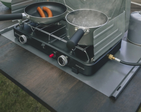 Outwell Heat Diffusion Plate & Windshield beskytter kjøkkenoverflatene dine mot varme og sikrer at du kan lage mat uten bekymringer. Det slitesterke stålet og praktiske uttak for gassledningen gjør den enkel å bruke. I vindfullt vær sørger det for sikker og effektiv matlaging, slik at du kan fokusere på å nyte matlagingen.