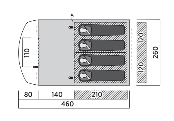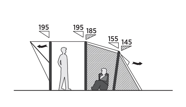 • Formede luftstenger sikrer god ståhøyde og romslighet i teltet